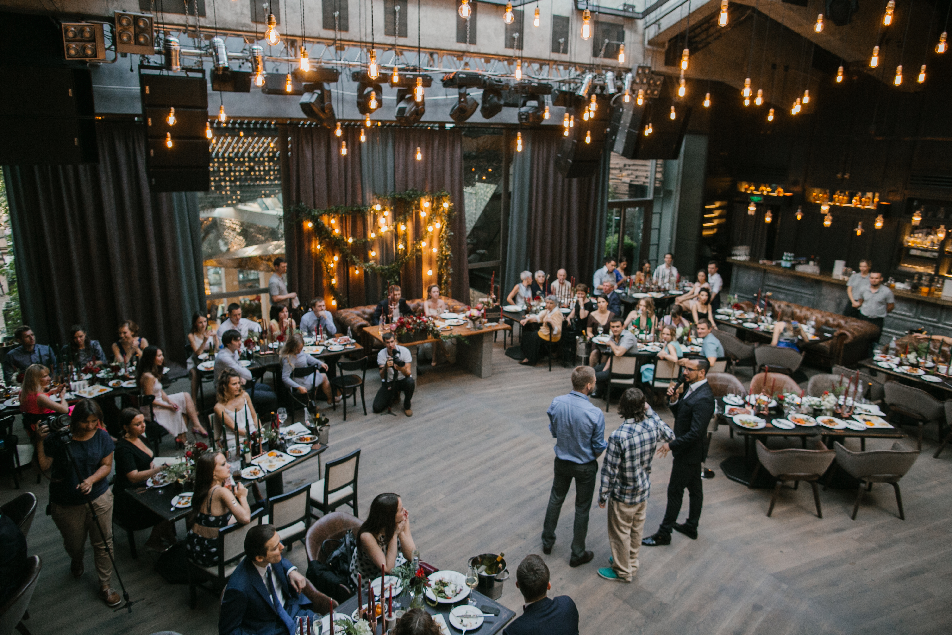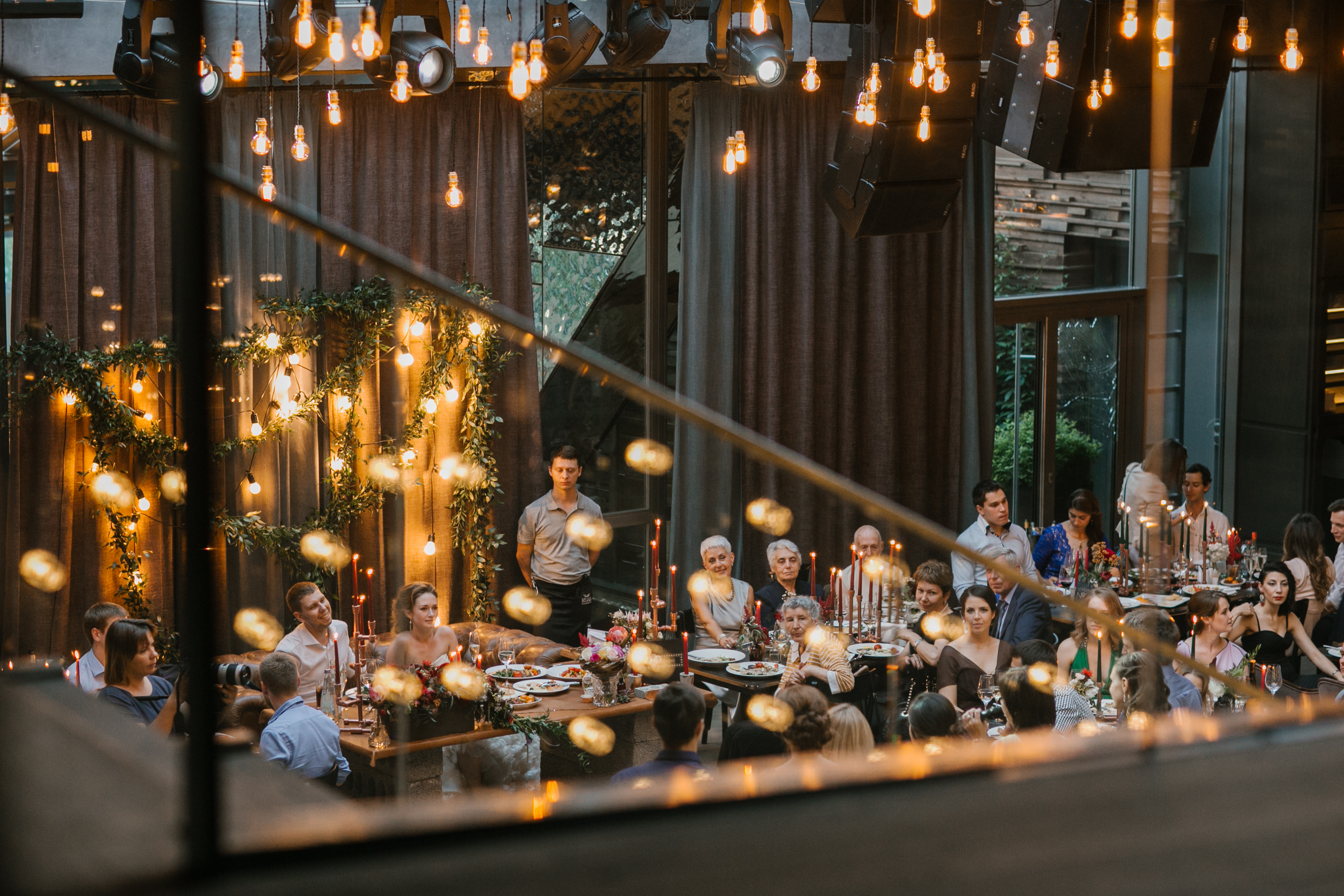 Свадебная вечеринка в ресторане с верандой