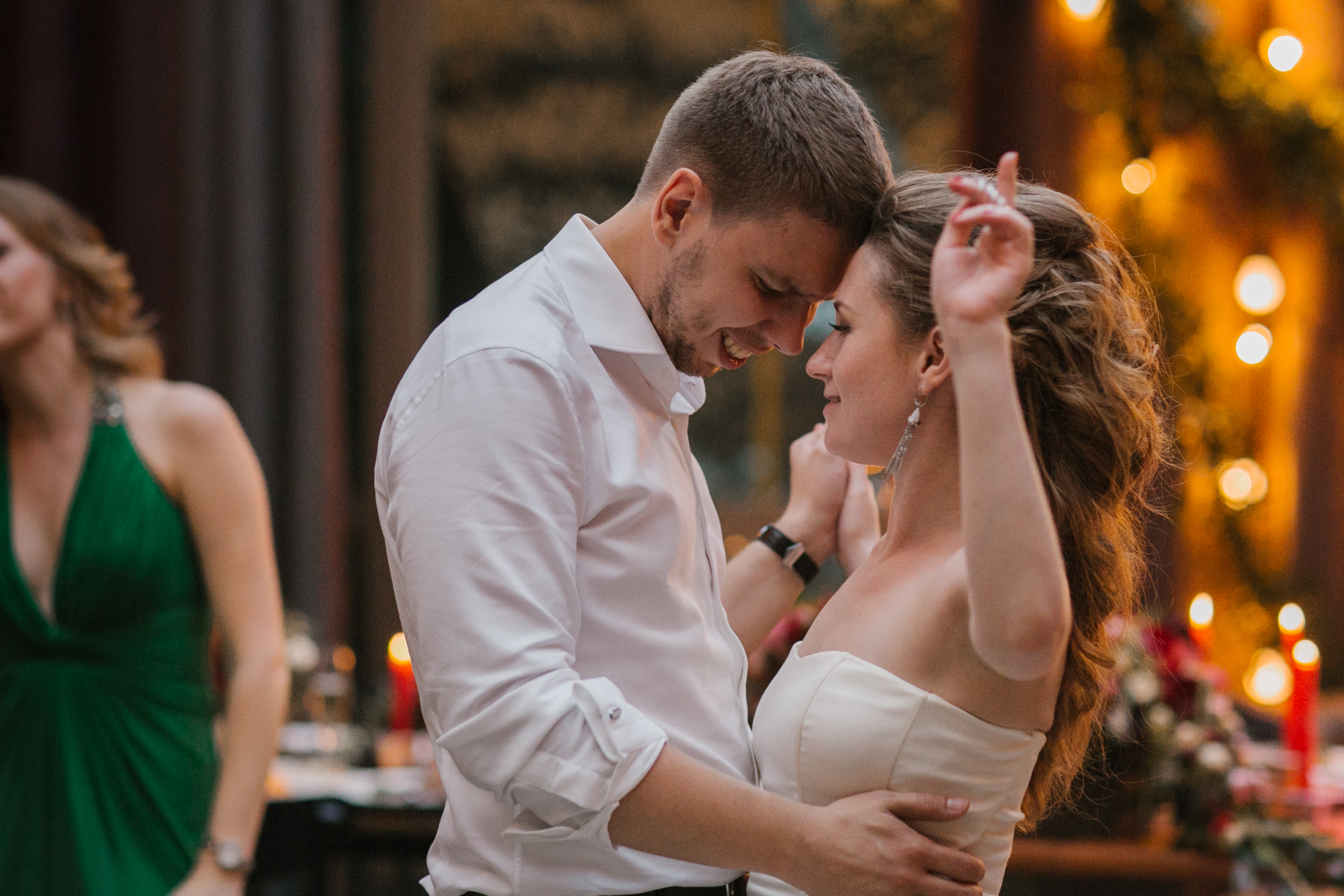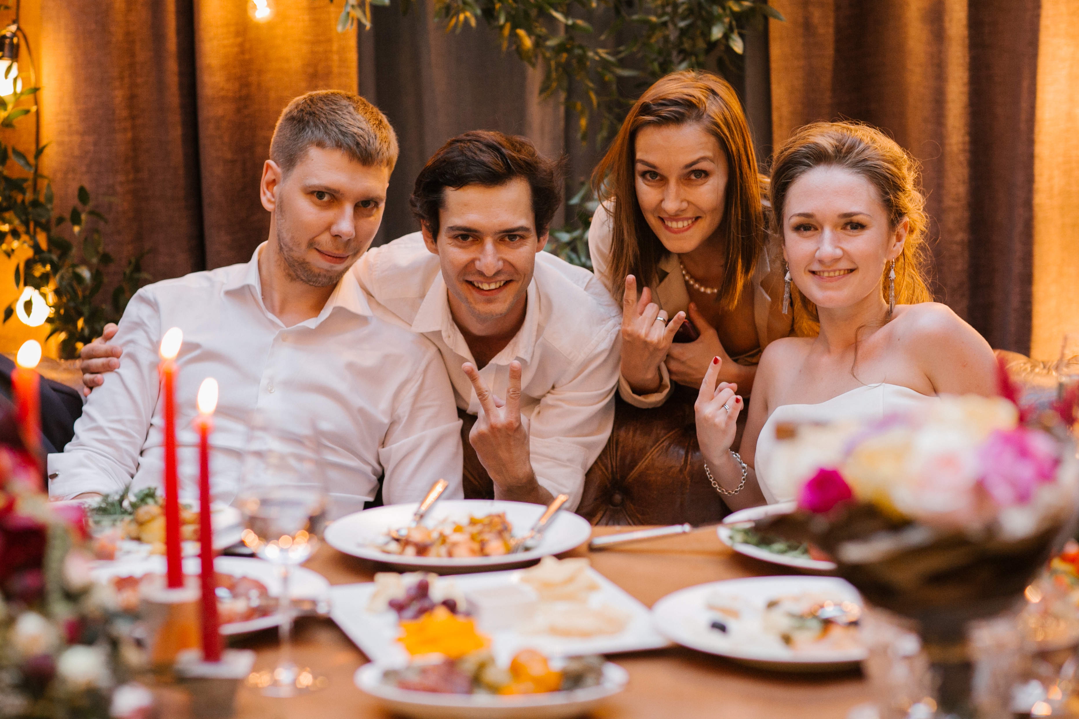 Шумная, танцевальная, веселая свадьба с шутками, зажигательной музыкой, брызгами шампанского и лирическими нотками. Комфортная как для молодых, так и для взрослого поколения. Ведение в легком европейском формате, больше танцев и свободного времени для общения.
